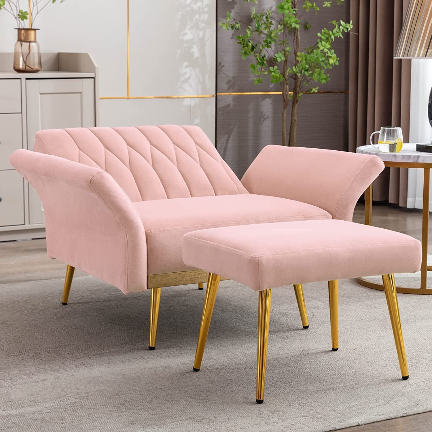 Pink Velvet Multifunctional Sofa Chair with Ottoman and Armrests